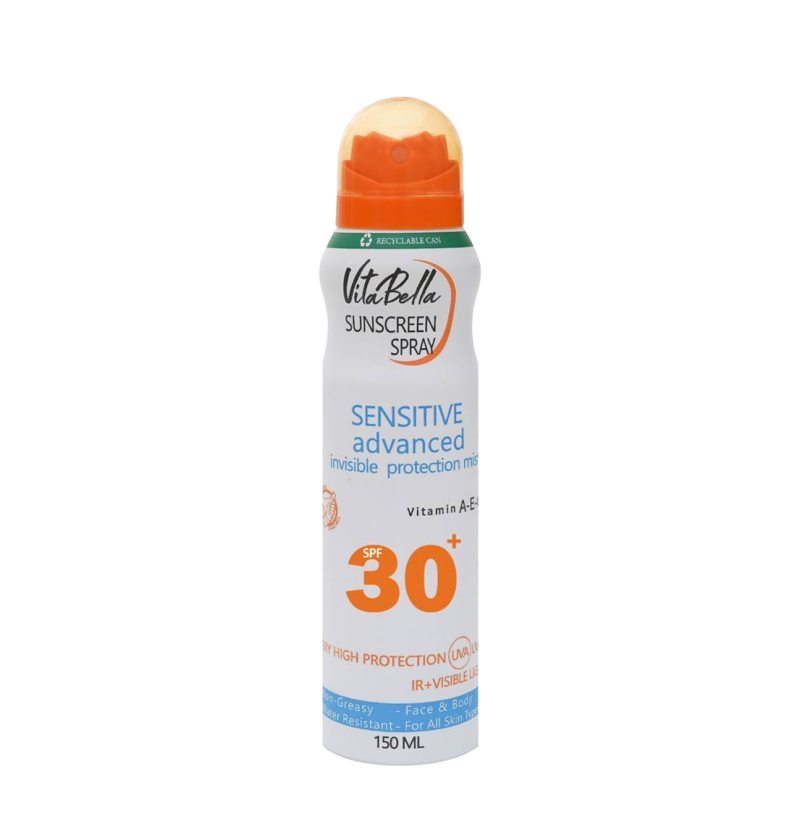 اسپری ضد آفتاب آئروسل ، محصولی با عملکرد مشابه کرم ضد آفتاب است ولی استفاده از آن خیلی راحت تر و سریع تر است و احساس چربی پوست در آن کمتر از کرم ضد آفتاب می باشد و می توانید آن را برای تمام نقاط بدن استفاده کنید. این محصول به صورت قطرات ریز روی پوست برای محافظت در برابر آفتاب استفاده می شود.اسپری ضد آفتاب ویتابلا با ترکیبات ثابت محافظت کننده در برابر اشعه ماوراء بنفش در کنار مواد طبیعی که پوست را بازسازی می کنند، فرموله شده است. این نوع ضد آفتاب برای نواحی سختتر بدن مانند گوشها، پشت کمر و پاها عالی است. استفاده از آن بسیار راحت است، بخصوص زمان هایی که بیرون هستید، یا به دلیل داشتن میکاپ امکان تجدید کرم ضد آفتاب وجود ندارد.